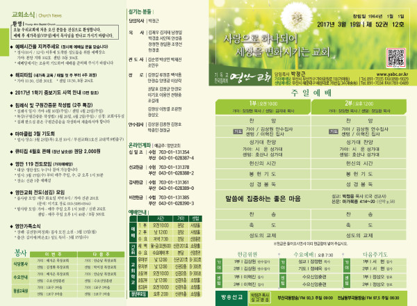 2017년 3월 19일 주보 페이지 정보 작성자 관리지기 작성일17-03-18 12:11 조회13,926회 댓글0건 관련링크 목록 본문 2017년 3월 19일 주보 댓글목록 등록된 댓글이 없습니다. 목록