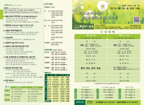2017년 5월 7일 주보 페이지 정보 작성자 관리지기 작성일17-05-06 11:53 조회14,239회 댓글0건 관련링크 목록 본문 2017년 5월 7일 주보 댓글목록 등록된 댓글이 없습니다. 목록