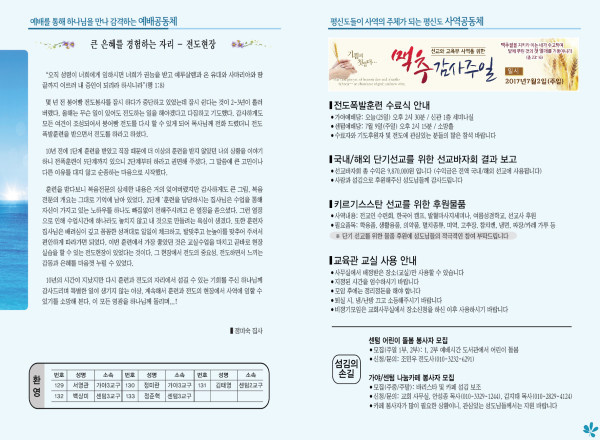 2017년 6월 25일 주보 페이지 정보 작성자 관리지기 작성일17-06-24 11:36 조회14,027회 댓글0건 관련링크 목록 본문 2017년 6월 25일 주보 댓글목록 등록된 댓글이 없습니다. 목록