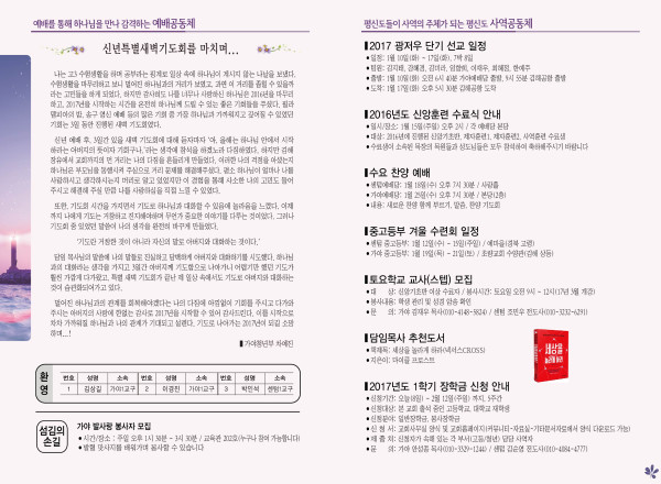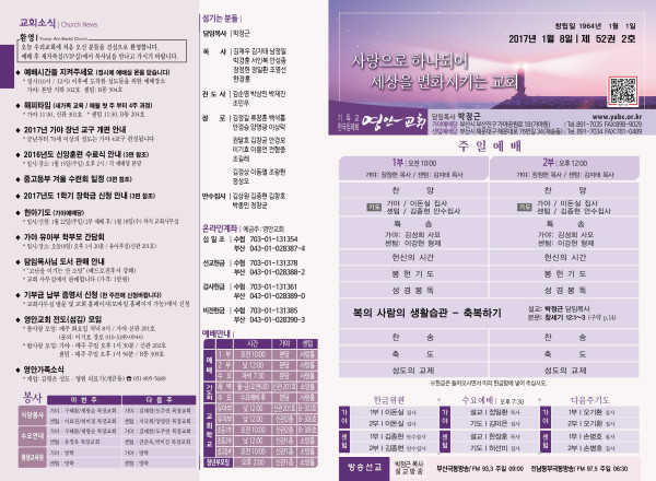 2017년 1월 8일 주보 페이지 정보 작성자 관리지기 작성일17-01-07 11:09 조회13,023회 댓글0건 관련링크 목록 본문 2017년 1월 8일 주보 댓글목록 등록된 댓글이 없습니다. 목록