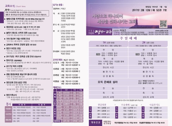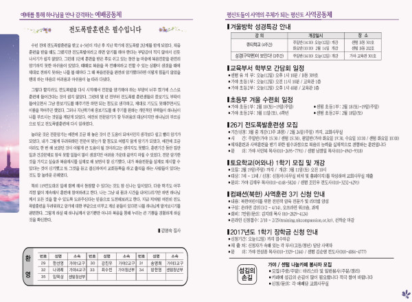 2017년 2월 12일 주보 페이지 정보 작성자 관리지기 작성일17-02-11 12:07 조회14,170회 댓글0건 관련링크 목록 본문 2017년 2월 12일 주보 댓글목록 등록된 댓글이 없습니다. 목록