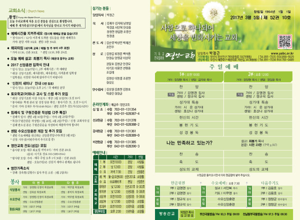 2017년 3월 5일 주보 페이지 정보 작성자 관리지기 작성일17-03-04 13:00 조회14,049회 댓글0건 관련링크 목록 본문 2017년 3월 5일 주보 댓글목록 등록된 댓글이 없습니다. 목록