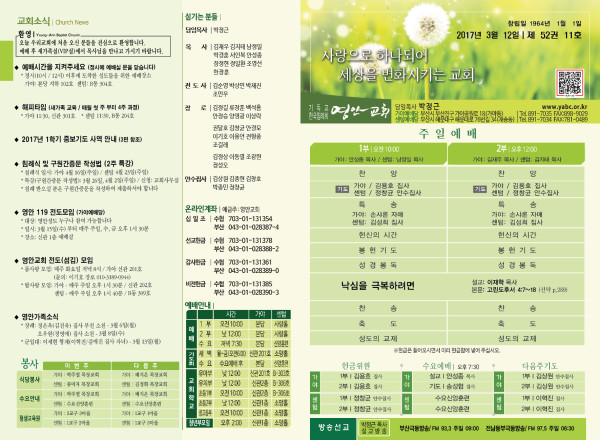 2017년 3월 12일 주보 페이지 정보 작성자 관리지기 작성일17-03-11 12:05 조회13,034회 댓글0건 관련링크 목록 본문 2017년 3월 12일 주보 댓글목록 등록된 댓글이 없습니다. 목록