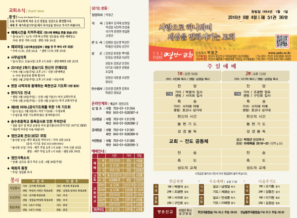 2016년 9월 4일 주보 페이지 정보 작성자 관리지기 작성일16-09-03 11:32 조회13,523회 댓글0건 관련링크 목록 본문 2016년 9월 4일 주보 댓글목록 등록된 댓글이 없습니다. 목록