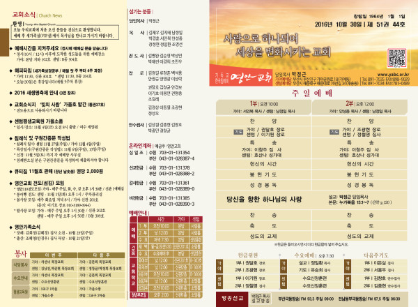 2016년 10월 30일 주보 페이지 정보 작성자 관리지기 작성일16-10-29 11:52 조회14,467회 댓글0건 관련링크 목록 본문 2016년 10월 30일 주보 댓글목록 등록된 댓글이 없습니다. 목록