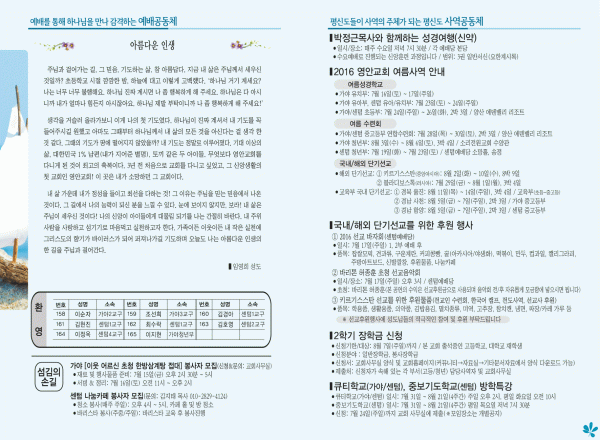 2016년 7월 10일 주보 페이지 정보 작성자 관리지기 작성일16-07-09 12:23 조회13,420회 댓글0건 관련링크 목록 본문 [2016년 7월 10일 주보] 댓글목록 등록된 댓글이 없습니다. 목록