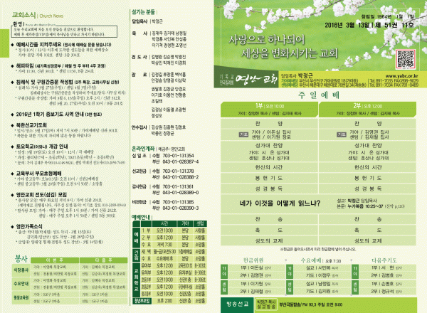 2016년 3월 13일 주보 페이지 정보 작성자 관리지기 작성일16-03-12 12:25 조회14,498회 댓글0건 관련링크 목록 본문 [2016년 3월 13일 주보] 댓글목록 등록된 댓글이 없습니다. 목록