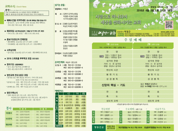 2016년 4월 3일 주보 페이지 정보 작성자 관리지기 작성일16-04-02 12:10 조회13,784회 댓글0건 관련링크 목록 본문 [2016년 4월 3일 주보] 댓글목록 등록된 댓글이 없습니다. 목록