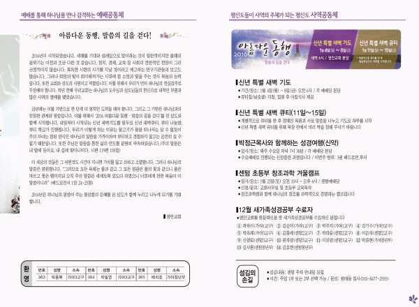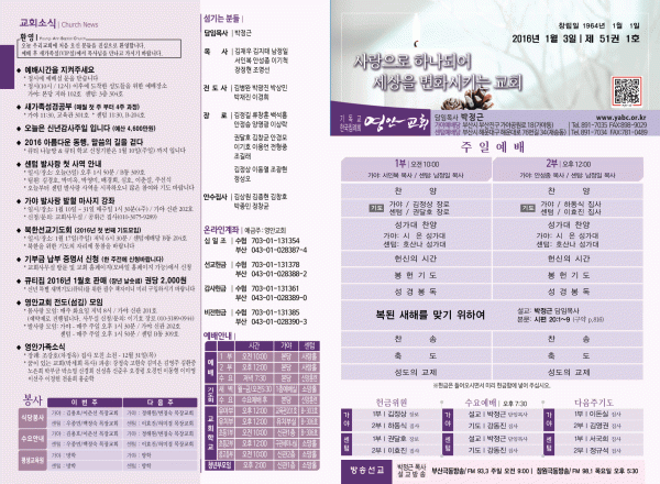 2016년 1월 3일 주보 페이지 정보 작성자 영안교회 작성일16-01-02 14:10 조회10,968회 댓글0건 관련링크 목록 본문 2016년 1월 3일 주보 댓글목록 등록된 댓글이 없습니다. 목록