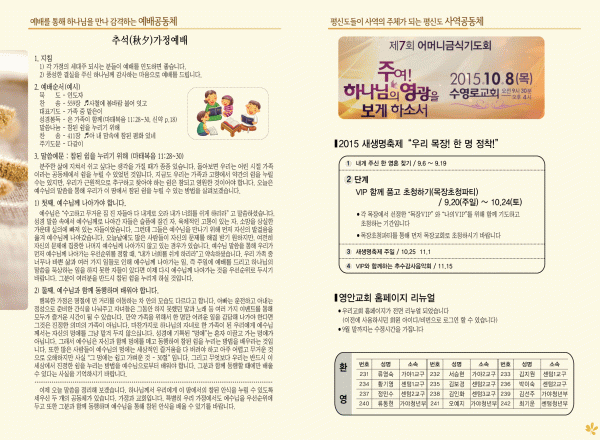 2015년 9월 27일 주보 페이지 정보 작성자 영안교회 작성일15-09-25 14:21 조회11,427회 댓글0건 관련링크 목록 본문 2015년 9월 27일 주보 댓글목록 등록된 댓글이 없습니다. 목록