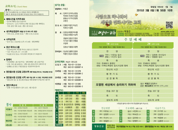 2015년 3월 8일 주보 페이지 정보 작성자 yabc 작성일15-03-07 00:00 조회10,222회 댓글0건 관련링크 목록 본문 2015년 3월 8일 주보 댓글목록 등록된 댓글이 없습니다. 목록