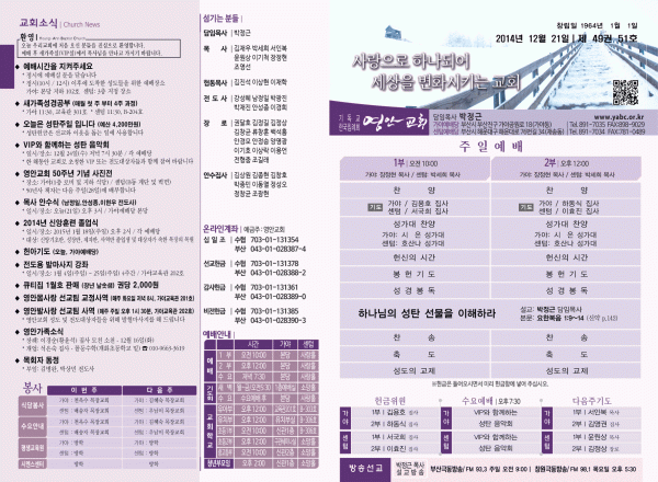 2014년 12월 21일 주보 페이지 정보 작성자 yabc 작성일14-12-20 00:00 조회10,492회 댓글0건 관련링크 목록 본문 2014년 12월 21일 주보 댓글목록 등록된 댓글이 없습니다. 목록