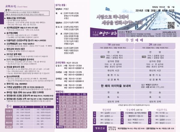 2014년 12월 28일 주보 페이지 정보 작성자 yabc 작성일14-12-27 00:00 조회10,829회 댓글0건 관련링크 목록 본문 2014년 12월 28일 주보 댓글목록 등록된 댓글이 없습니다. 목록