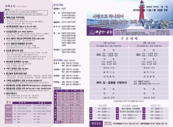 2015년 1월 11일 주보 페이지 정보 작성자 yabc 작성일15-01-10 00:00 조회9,719회 댓글0건 관련링크 목록 본문 2015년 1월 11일 주보 댓글목록 등록된 댓글이 없습니다. 목록