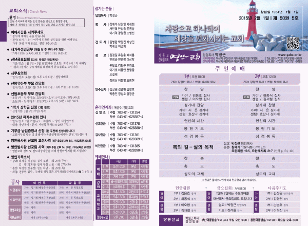 2015년 2월 1일 주보 페이지 정보 작성자 yabc 작성일15-01-31 00:00 조회9,998회 댓글0건 관련링크 목록 본문 2015년 2월 1일 주보 댓글목록 등록된 댓글이 없습니다. 목록