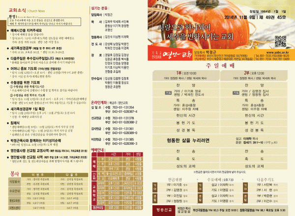 2014년 11월 9일 주보 페이지 정보 작성자 yabc 작성일14-11-08 00:00 조회10,266회 댓글0건 관련링크 목록 본문 2014년 11월 9일 주보 댓글목록 등록된 댓글이 없습니다. 목록