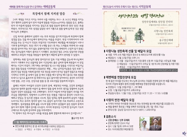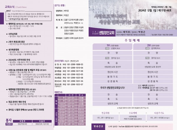 2024년 12월 1일 주보 (센텀예배당) 페이지 정보 작성자 관리지기 작성일24-11-30 09:39 조회2,020회 댓글0건 관련링크 목록 본문 2024년 12월 1일 주보 (센텀예배당) 댓글목록 등록된 댓글이 없습니다. 목록