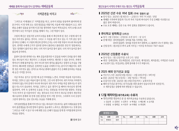 2025년 1월 5일 주보 페이지 정보 작성자 관리지기 작성일25-01-04 11:19 조회2,288회 댓글0건 관련링크 목록 본문 2025년 1월 5일 주보 댓글목록 등록된 댓글이 없습니다. 목록