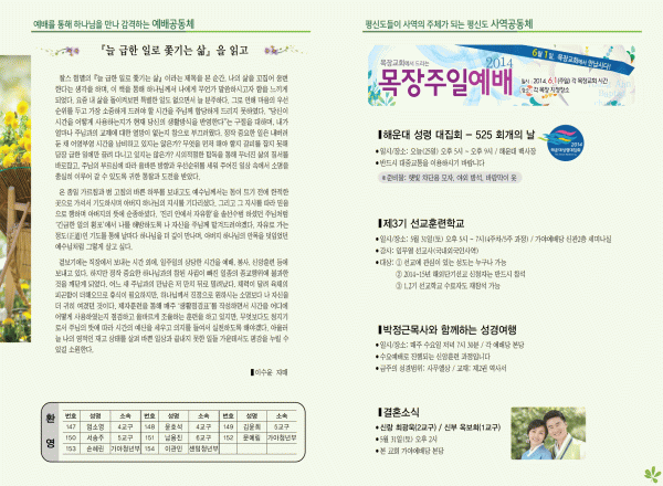 2014년 5월25일 주보 페이지 정보 작성자 yabc 작성일14-05-24 00:00 조회10,718회 댓글0건 관련링크 목록 본문 2014년 5월25일 주보 댓글목록 등록된 댓글이 없습니다. 목록