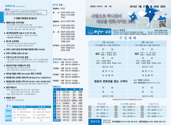 2014년 7월 27일 주보 페이지 정보 작성자 yabc 작성일14-07-26 00:00 조회12,466회 댓글0건 관련링크 목록 본문 2014년 7월 27일 주보 댓글목록 등록된 댓글이 없습니다. 목록