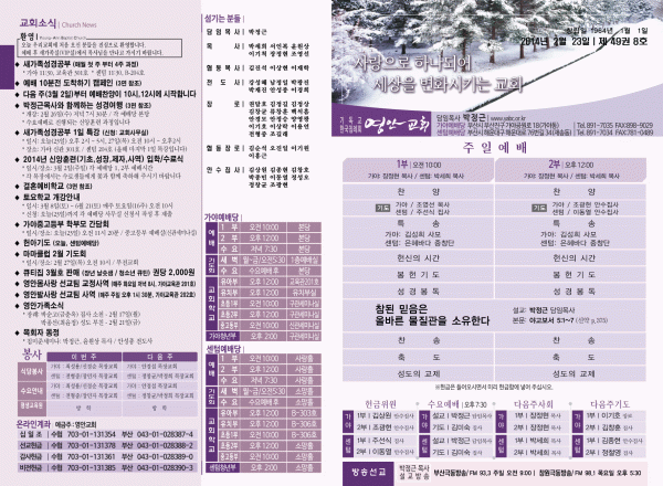 2014년 2월 23일 주보 페이지 정보 작성자 yabc 작성일14-02-22 00:00 조회10,113회 댓글0건 관련링크 목록 본문 2014년 2월 23일 주보 댓글목록 등록된 댓글이 없습니다. 목록