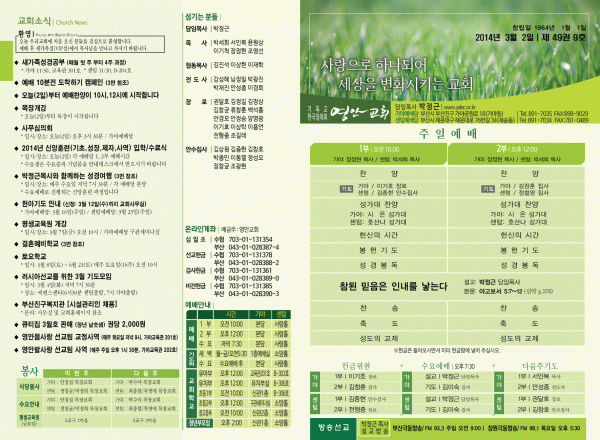 2014년 3월 2일 주보 페이지 정보 작성자 yabc 작성일14-02-28 00:00 조회9,740회 댓글0건 관련링크 목록 본문 2014년 3월 2일 주보 댓글목록 등록된 댓글이 없습니다. 목록