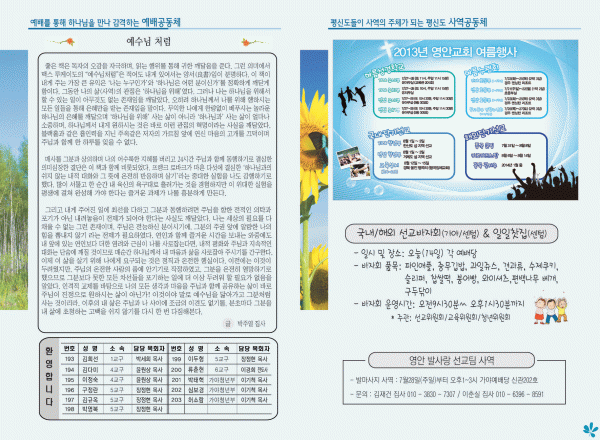 영안교회의 성도들을 위한