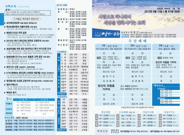 2012년 8월 12일 주보 페이지 정보 작성자 yabc 작성일12-08-11 00:00 조회10,668회 댓글0건 관련링크 목록 본문 2012년 8월 12일 주보 댓글목록 등록된 댓글이 없습니다. 목록
