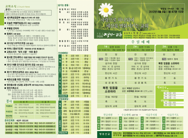 2012년 4월 8일 주보 페이지 정보 작성자 yabc 작성일12-04-07 00:00 조회10,551회 댓글0건 관련링크 목록 본문 2012년 4월 8일 주보 댓글목록 등록된 댓글이 없습니다. 목록