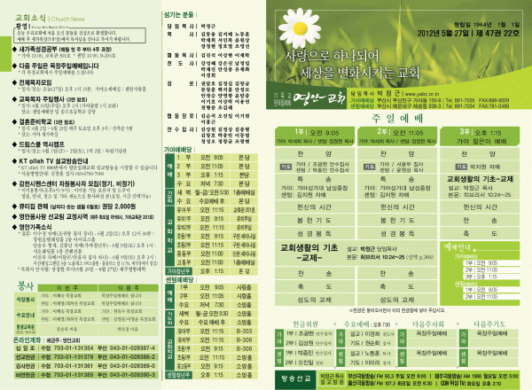2012년 5월 27일 주보 페이지 정보 작성자 yabc 작성일12-05-26 00:00 조회10,504회 댓글0건 관련링크 목록 본문 2012년 5월 27일 주보 댓글목록 등록된 댓글이 없습니다. 목록
