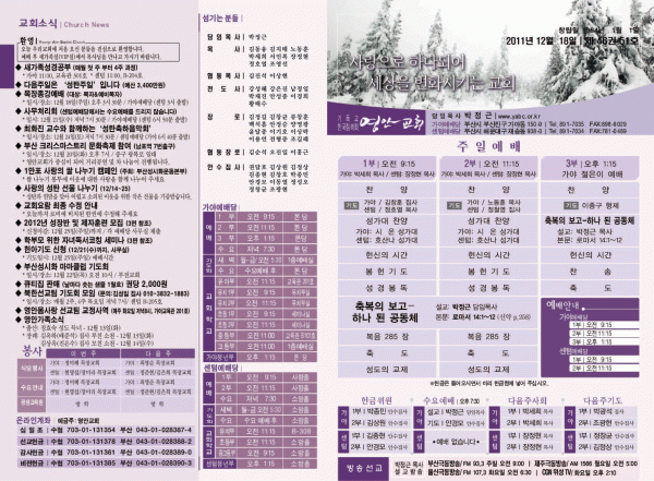 2011년 12월 18일 주보 페이지 정보 작성자 yabc 작성일11-12-17 00:00 조회10,909회 댓글0건 관련링크 목록 본문 2011년 12월 18일 주보 댓글목록 등록된 댓글이 없습니다. 목록