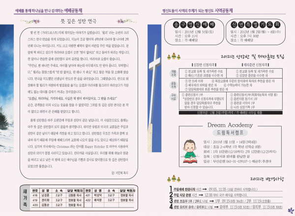 2011년 12월 25일 주보 페이지 정보 작성자 yabc 작성일11-12-24 00:00 조회10,356회 댓글0건 관련링크 목록 본문 2011년 12월 25일 주보 댓글목록 등록된 댓글이 없습니다. 목록