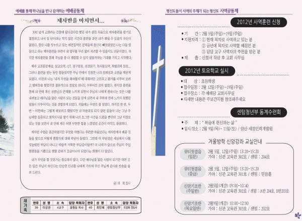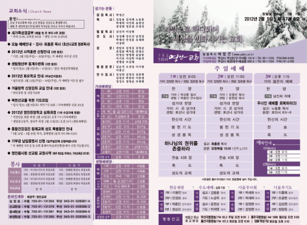 2012년 2월 5일 주보 페이지 정보 작성자 yabc 작성일12-02-04 00:00 조회10,404회 댓글0건 관련링크 목록 본문 2012년 2월 5일 주보 댓글목록 등록된 댓글이 없습니다. 목록