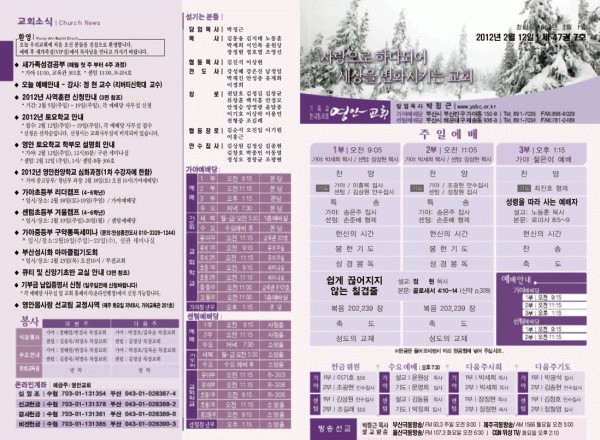 2012년 2월 12일 주보 페이지 정보 작성자 yabc 작성일12-02-11 00:00 조회10,310회 댓글0건 관련링크 목록 본문 2012년 2월 12일 주보 댓글목록 등록된 댓글이 없습니다. 목록