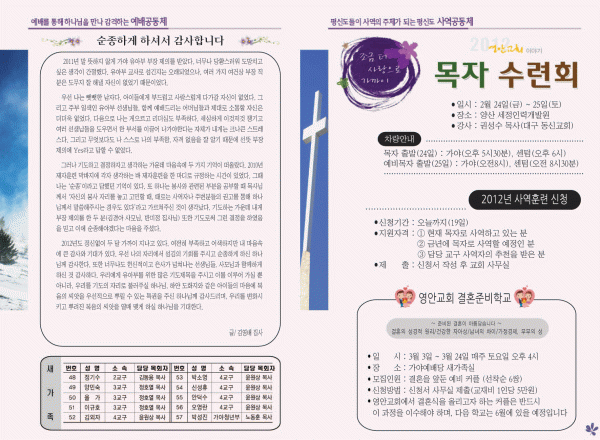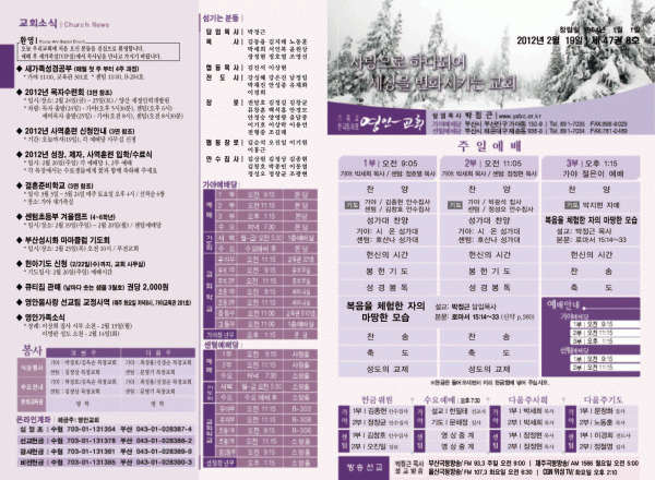2012년 2월 19일 주보 페이지 정보 작성자 yabc 작성일12-02-18 00:00 조회10,600회 댓글0건 관련링크 목록 본문 2012년 2월 19일 주보 댓글목록 등록된 댓글이 없습니다. 목록
