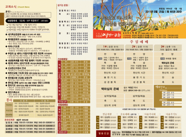 2011년 9월 25일 주보 페이지 정보 작성자 yabc 작성일11-09-24 00:00 조회11,035회 댓글0건 관련링크 목록 본문 2011년 9월 25일 주보 댓글목록 등록된 댓글이 없습니다. 목록