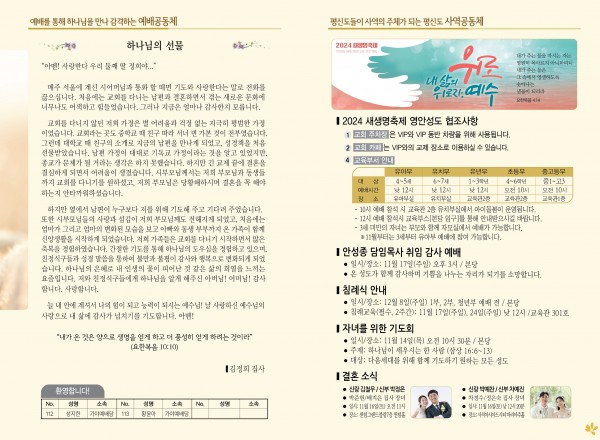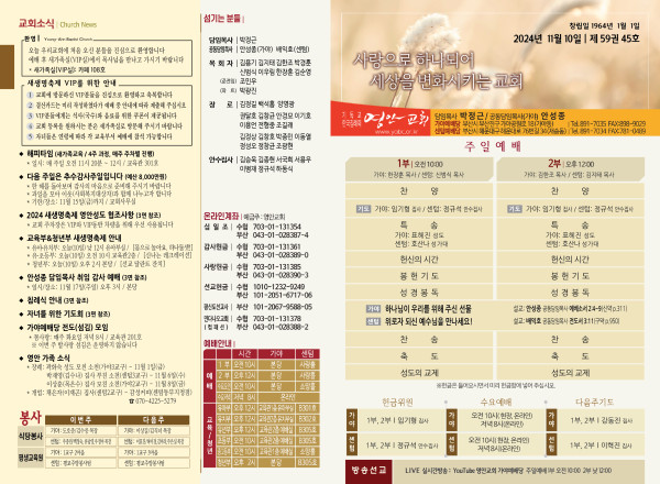 2024년 11월 10일 주보 (가야예배당) 페이지 정보 작성자 관리지기 작성일24-11-09 11:28 조회2,172회 댓글0건 관련링크 목록 본문 2024년 11월 10일 주보 (가야예배당) 댓글목록 등록된 댓글이 없습니다. 목록