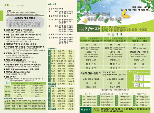 2011년 4월 17일 주보 페이지 정보 작성자 yabc 작성일11-04-16 00:00 조회10,713회 댓글0건 관련링크 목록 본문 2011년 4월 17일 주보 댓글목록 등록된 댓글이 없습니다. 목록