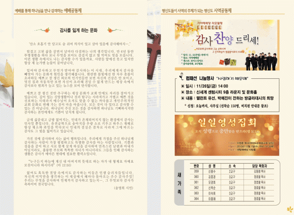 2010년 11월 21일 주보 페이지 정보 작성자 yabc 작성일10-11-20 00:00 조회10,802회 댓글0건 관련링크 목록 본문 2010년 11월 21일 주보 댓글목록 등록된 댓글이 없습니다. 목록