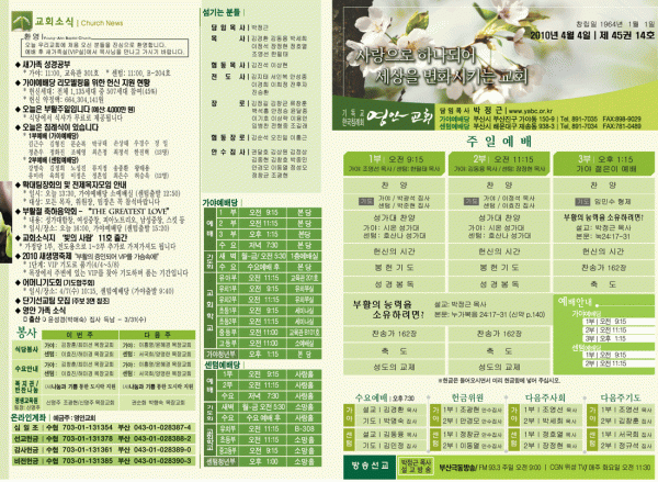 2010년 4월 4일 주보 페이지 정보 작성자 yabc 작성일10-04-03 00:00 조회11,185회 댓글0건 관련링크 목록 본문 2010년 4월 4일 주보 댓글목록 등록된 댓글이 없습니다. 목록