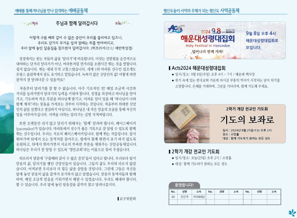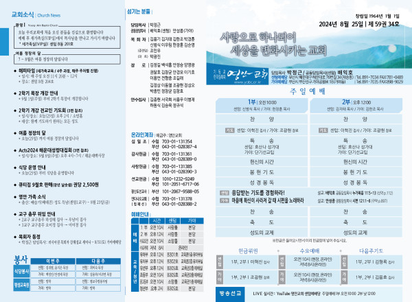 2024년 8월 25일 주보 (센텀예배당) 페이지 정보 작성자 관리지기 작성일24-08-24 10:51 조회2,059회 댓글0건 관련링크 목록 본문 2024년 8월 25일 주보 (센텀예배당) 댓글목록 등록된 댓글이 없습니다. 목록