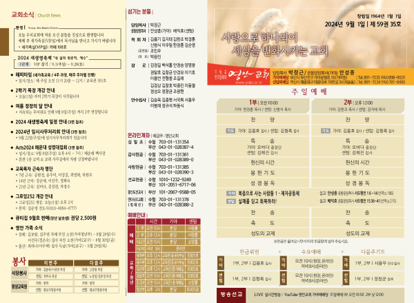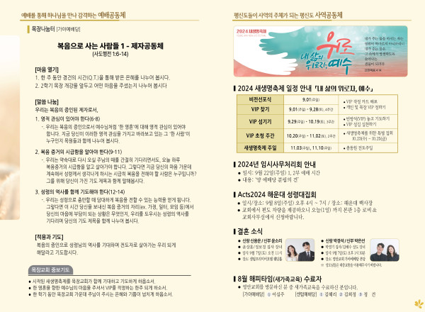 2024년 9월 1일 주보 (가야예배당) 페이지 정보 작성자 관리지기 작성일24-08-31 13:49 조회2,300회 댓글0건 관련링크 목록 본문 2024년 9월 1일 주보 (가야예배당) 댓글목록 등록된 댓글이 없습니다. 목록