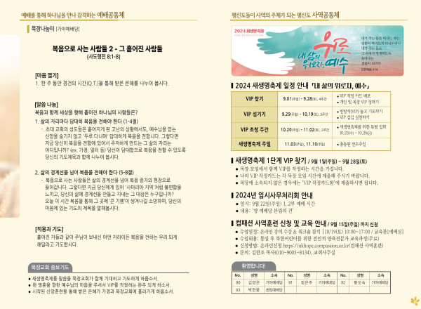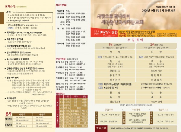 2024년 9월 8일 주보 (가야예배당) 페이지 정보 작성자 관리지기 작성일24-09-07 11:22 조회2,192회 댓글0건 관련링크 목록 본문 2024년 9월 8일 주보 (가야예배당) 댓글목록 등록된 댓글이 없습니다. 목록