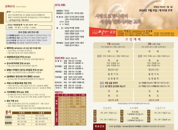 2024년 9월 15일 주보 (가야예배당) 페이지 정보 작성자 관리지기 작성일24-09-14 11:07 조회2,304회 댓글0건 관련링크 목록 본문 2024년 9월 15일 주보 (가야예배당) 댓글목록 등록된 댓글이 없습니다. 목록