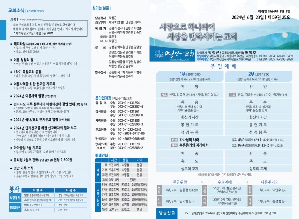 2024년 6월 23일 주보 (센텀예배당) 페이지 정보 작성자 관리지기 작성일24-06-22 10:55 조회2,441회 댓글0건 관련링크 목록 본문 2024년 6월 23일 주보 (센텀예배당) 댓글목록 등록된 댓글이 없습니다. 목록