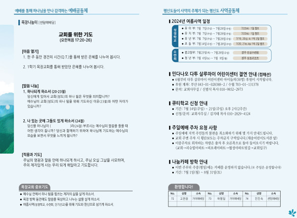 2024년 6월 30일 주보 (센텀예배당) 페이지 정보 작성자 관리지기 작성일24-06-29 11:14 조회2,385회 댓글0건 관련링크 목록 본문 2024년 6월 30일 주보 (센텀예배당) 댓글목록 등록된 댓글이 없습니다. 목록