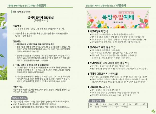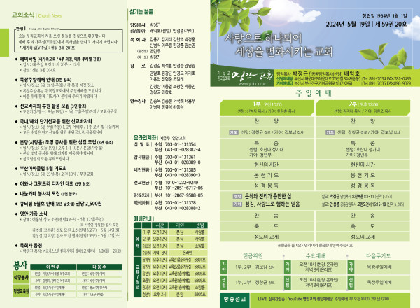 2024년 5월 19일 주보 (센텀예배당) 페이지 정보 작성자 관리지기 작성일24-05-18 10:55 조회2,382회 댓글0건 관련링크 목록 본문 2024년 5월 19일 주보 (센텀예배당) 댓글목록 등록된 댓글이 없습니다. 목록