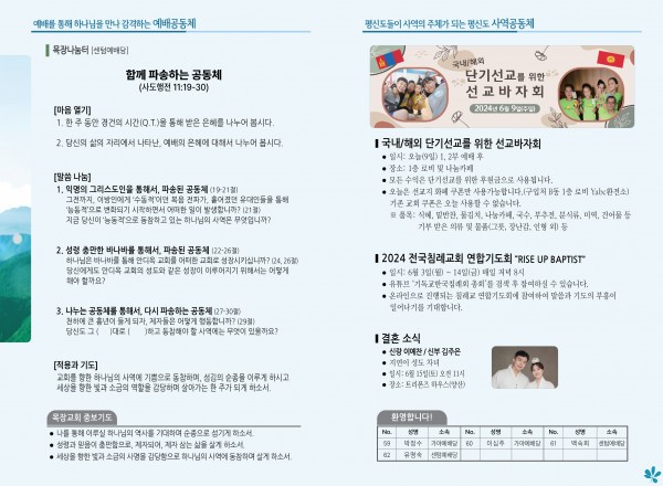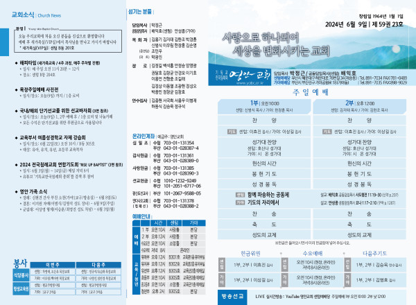 2024년 6월 9일 주보 (센텀예배당) 페이지 정보 작성자 관리지기 작성일24-06-08 10:44 조회2,467회 댓글0건 관련링크 목록 본문 2024년 6월 9일 주보 (센텀예배당) 댓글목록 등록된 댓글이 없습니다. 목록