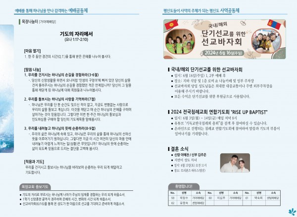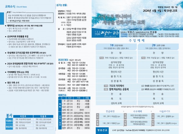 2024년 6월 9일 주보 (가야예배당) 페이지 정보 작성자 관리지기 작성일24-06-08 11:27 조회2,716회 댓글0건 관련링크 목록 본문 2024년 6월 9일 주보 (가야예배당) 댓글목록 등록된 댓글이 없습니다. 목록