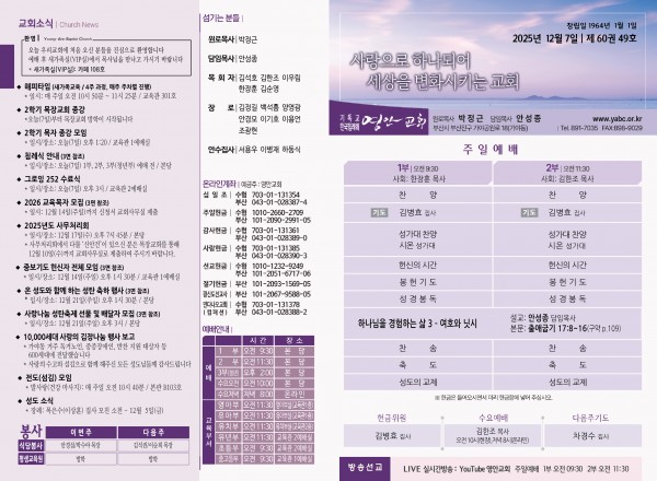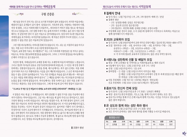 2025년 12월 7일 주보 페이지 정보 작성자 관리지기 작성일25-12-06 10:36 조회832회 댓글0건 관련링크 목록 본문 2025년 12월 7일 주보 댓글목록 등록된 댓글이 없습니다. 목록